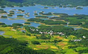 大隆洞水库位于台山市西南大隆洞河上游,它与下游烽火角水闸配合,解决15万亩农田的灌溉用水,并发挥防洪、防潮、治涝、冲咸和发电等综合效益。这里空气清新,环境幽静,湖光山色秀美,138个绿树婆娑的小岛错落湖中,因此有“千岛湖”之称,游客可乘船畅游“千岛湖”。