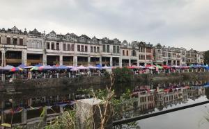 赤坎沿潭江而建,南岸是乡村,北岸则是城市,清一色的骑楼,远比开平老街庞大的洋楼群。沿江的堤东堤西路,里面与之平行的中华路,夹在两条大路间还有一条叫“二马路”的小路,有一番中西合璧的古朴味道。因此有“中国第五名古镇”之称。《让子弹飞》《一代宗师》等多部电影和电视剧拍摄地。