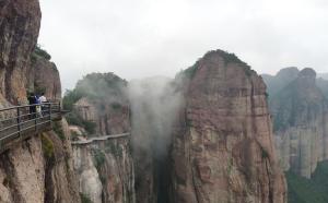 雪窦山景区位于浙江省奉化市溪口镇西北,为四明山支脉的最高峰,海拔800米。 有“四明第一山”之誉,是弥勒佛道场。风景区包括溪口镇、雪窦山、亭下湖三部分。有千丈岩、三隐潭瀑布,妙高台、商量岗、林海等景观。