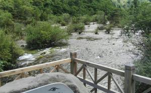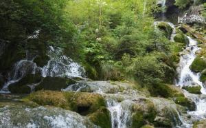熊猫海瀑布高度达80米,是沟内瀑布中落差最大的一个,三级叠水,极为壮观。水流奔腾而下,在栈道边激起水花,跌落深谷的激流,沿着河道狂啸而去。瀑布是在冬天断流后会完全结冰,形成冰瀑,又别有一番景色。