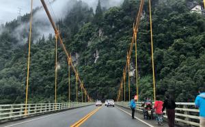 通麦大桥是川藏公路318国道的咽喉工程,是一座临时保通性工程。大桥设计为双塔双跨悬索桥,跨越帕隆藏布的支流易贡藏布,全长258米,主跨为210米,高31.5米,该桥的建成使中断的318国道得以畅通。