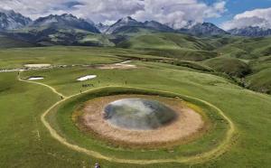 格聂之眼位于下则通村子 15 分钟的距离,它属于天然形成的大坑,从高空中俯瞰,仿似一只大眼睛,所以名为格聂之眼。格聂之眼就像大地的一只眼睛,倒映着蓝天白云,清澈明亮。“格聂之眼”是观赏格聂群峰的最佳位置,眼前草甸平坦开阔,视野没有遮挡,格聂群峰就在草甸尽头矗立着,七座山峰一字排开。