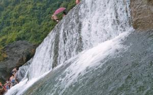 响水瀑布位于柳州市鹿寨县,因中渡镇大兆村附近洛清江一滩头,河水奔流而下,其声隆隆,远闻若雷,近闻似鼓,四季如此,故得名“响水”。