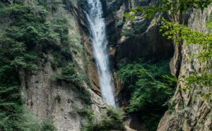 斗母瀑布气势宏大,从斗母奇峰倾泻而下,垂直落差八十余米,堪称陕西第一瀑