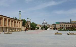 叶尔羌汗国王陵即阿勒屯鲁克麻扎,是叶尔羌汗国王族的墓地,位于莎车县城内新城和老城之间,主要由清真寺、墓地和阿曼尼莎汗陵墓三部分组成。陵园西部是彩绘天棚覆顶高台构成的清真寺,东部是阿勒屯凿坝,中部是墓地,也是陵园的主体部分。