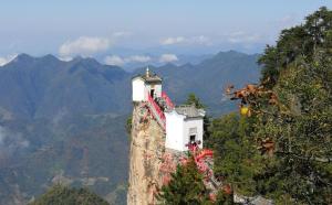 塔云山是驰名秦、鄂、川、豫等地的道教名山,主峰金顶海拔1665.8米,形似宝塔,直耸云端,素有“金顶刺青天,松海云雾间”之美誉。其道教古建筑群建于明正德年间(1505—1521),由一馆、一塔、一庙、一堂、九殿组成,风格古朴而清雅。置身金顶,流云绕膝,松涛阵阵,香风扑面,犹在天堂。
