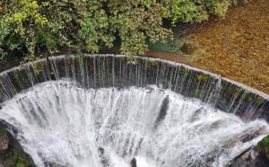 天生桥景区位于神农架南部的老君山北麓,以“奇谭”“奇瀑”“奇洞”著称。发源于老君山的黄岩河流经此地,经过亿万年地表水和地下水的流动形成一岩溶性天生穿洞,程萌芦状,高约17米,河水穿洞下泻,使黄岩河两岸一桥横贯东西,呈现出“天桥飞渡”,故名天生桥。