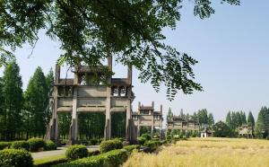 徽商大宅院又名“西园”,是将散落在全县范围内濒临坍塌的26座明末、清代等时期具有徽派特色的建筑进行拆迁和修缮,按照“复原”的原则,整体搬进了西园。大宅院内的古徽州“三雕”(石雕、木雕、砖雕)数量众多,不少是从民间征集收购。徽商大宅院整座古建筑群集牌坊、戏台、亭阁、花园、水榭等于一体,为组合式的宅第群体,有宅第,房屋,天井,柱子等众多。