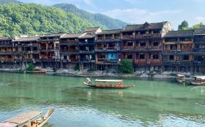 沱江是凤凰县境内最大的河流,而对于游客来说,沱江就是凤凰古城城墙边的那段河段。游览沱江最常见的方式就是“沱江泛舟”(费用已经包含在凤凰古城通票内),从靠近北门的码头上船,顺流而下,一直到东门外虹桥附近,全程约20分钟左右,途中还能听到船工的号子声和民歌对唱。沱江东门附近,有万寿楼,万名塔,夺翠楼等景点,而沱江北门附近的跳岩,则是东北方向进出凤凰古城的主要通道之一,是拍摄沱江美景的最佳取景点。