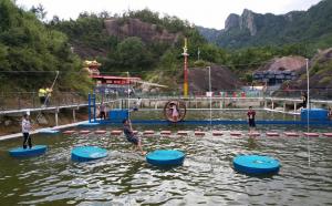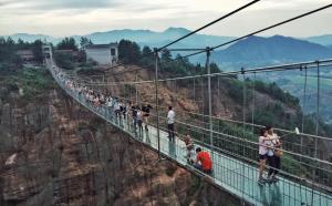 石牛寨玻璃桥,也称为“好汉桥”,长约300米,垂直高度达180米,相当于四五十层楼房的高度,历经四年的构思与两年艰苦工程的改造于2015年国庆前夕正式对游客开放,是国内首座高空全透明玻璃桥,也是目前国内跨度最大,垂直高度最高的玻璃桥。 这座国内首座投入使用的全透明高空玻璃桥,风和日丽之时,踏在玻璃桥上,石牛寨峡谷裂隙尽收眼底,行走其上彷如御风而行,惊险无比;云深雾重之际,桥上悬空赏景漫步云端,如若“云中跳桥”,置身于峡谷天堑以独特角度感受石牛寨丹霞奇观。