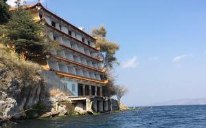 孤山岛是抚仙湖唯一的岛屿,位于江川境内抚仙湖南部,面积约6万平方米,孤山南面与海门公园相隔,北面与碧云寺上的莲花峰相望。上孤山需要乘人力船前往,岛上种植有许多松树,瀛海楼是全岛的最高点,一共有三层,站在顶层可以看到抚仙湖全貌。每到农历六月初六,当地人便前往孤山做庙会。