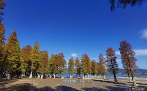 四明湖水杉湿地位于宁静的四明湖畔,这里生长着大片的水杉树木,树干笔直挺拔,拔地而起。它们整齐地排列着,静静地立在水中或岸边。每年到了秋季的时候,树叶变成金黄色或橘红色,远远看去非常漂亮,也是赏秋的好去处,更有江浙沪“小新疆”之称。