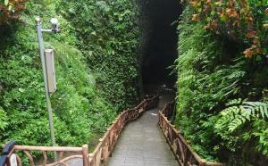 张家界朝阳地缝景区(原张家界一线天),景区内恒温19℃,垂直深度近200米,全长5公里,是世界上最长的“一线天”奇观。它是赵家垭库区流水经几亿年冲刷,把暗河运行轨迹形成的各类奇异岩溶地貌型态全都显露出来的水底大溶洞,洞穴廊道呈峡谷状态,走向由南向北穿山而过。