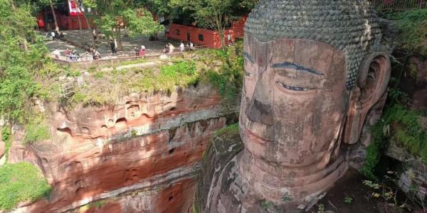 早上我们坐船游览观赏乐山大佛,举世闻名的大佛开凿于唐玄宗开元初年,历时90年才告完成,佛像高71米,比号称世界大的阿富汗米昂大佛高出18米,是名副其实的世界之最,令人叹为观止。