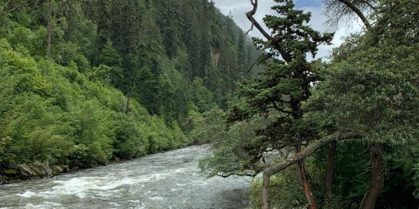 这里气候温和,雨量充沛,生物繁茂,冬无严寒、夏无酷暑,是典型的江南气候。在这里森林自由的生长,桃花尽情的绽放,冰川从这里发育、雪山的融水汇聚成了湖泊,世外桃源也就是这样了吧。