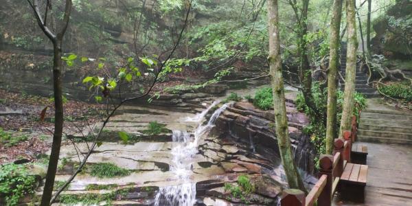 3、溯溪前行在林木葱茏的红豆谷,感叹“红豆连理”的美丽的爱情传说。