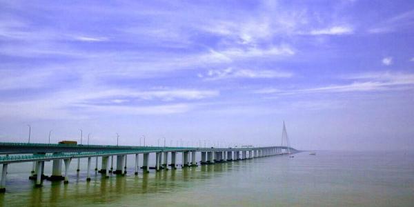 杭州湾跨海大桥是一座横跨中国杭州湾海域的跨海大桥,它北起浙江嘉兴海盐郑家埭,南至宁波慈溪水路湾,全长36千米,是成为继青岛胶州湾大桥和美国庞恰特雷恩湖桥后的目前世界上最长的跨海大桥后的世界第三长的桥梁。