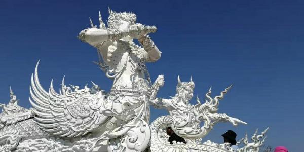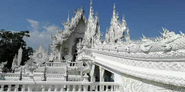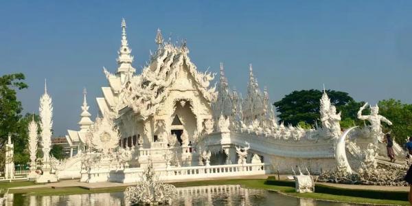 早餐后前往【辛哈农场】既是农场又是公园,也可以说是动物园。,参观【龙坤艺术神庙Wat Rong Khun】,俗称白庙。白庙的设计灵感是来自佛祖对世人的教化,用很形象生动的手法劝慰世人弃恶从善。当人们死后要想上天堂见到佛祖就一定要经过一座桥,桥上有两员神将把守,只有平生没有做过什么坏事一心向善的人才能路过此桥而升入天堂。