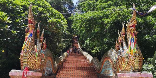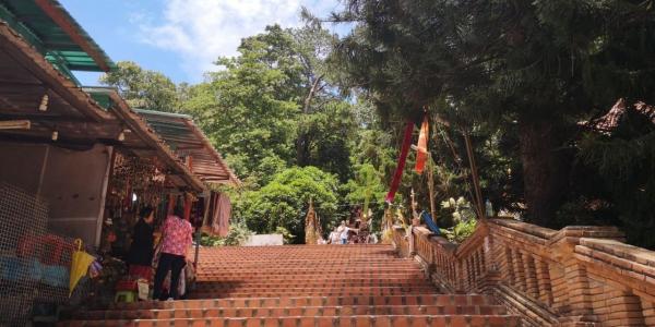 传说有位锡兰高僧带了几颗佛舍利到泰国下,高僧们将舍利放在白象上,由白象选择一处可以建寺供奉舍利的福地,白象随意游荡,便在双龙寺的现址趴下,人们就建了舍利塔,又由于山路两旁有两只金龙守护,所以便叫做“双龙寺”。双龙寺是泰北著名的佛教避暑胜地,为皇室所建,充满传奇色彩。![]()