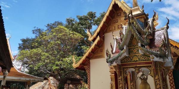 早餐后前往著名的【素贴山】,沿着306个台阶攀登而上,来到清迈最著名的【双龙寺】,一座由神像选址,充满传奇色彩而著名的佛教避暑胜地,寺内金碧辉煌,香火鼎盛,寺庙里埋有佛主的舍利子,是虔诚佛教信徒向往朝拜的地方。之后前往【蓝庙】、【美登大象训练营】,观赏大象表演。