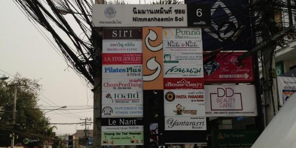 清迈宁曼路也叫尼曼路,网友们戏称这条路为“你妈喊你路”,不过与其说是路,不如说是交叉的几条街道,这里既安静又有趣。各种小店、咖啡馆聚集在这里,每家的招牌明艳又醒目,还有各种卡通玩偶作为店铺形象。夏季白天比较热,傍晚和夜市人慢慢较多。
