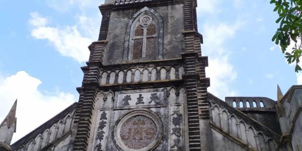 天主教堂位于涠洲岛东北部的盛塘村,这座始建于1853年的天主教堂是法国巴黎外方传教会在北海地区建造的。虽然这座天主教堂的年代久远,但是它的主体建筑依旧保存的较为完好。它是典型的文艺复兴时期法国哥特式教堂,有着高耸的罗马式尖塔。与周围低矮的民居相比,教堂显得尤为壮观醒目。