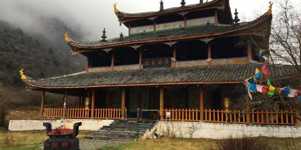 黄龙古寺,始建于明代,距黄龙沟沟口约3.5公里。黄龙寺以道家为主流。相传助大禹治水的东海黄龙功成身退修道成仙,成为黄龙真人,其身化作十里金沙,其麟化作千座彩池。后人感激黄龙真人的功德,建黄龙寺纪念。黄龙古寺附近有白雪皑皑的玉翠山和顶峰雪宝顶。寺前有近万平方米的开阔地,每年举办庙会。 值得一提的是黄龙寺旁的五彩池,无数个大大小小的池子像是装满五彩颜料的调色盘,在阳光下光彩夺目,摄人心魄。