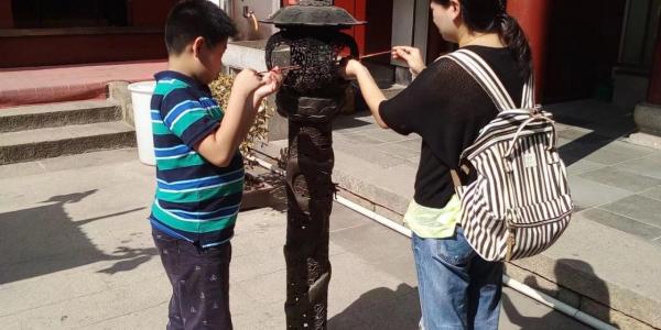 游览化城寺,化城寺为九华山开山祖寺,历史最悠久又是地藏菩萨道扬,是九华山寺院的"总丛林"。东晋隆安五年(401 年),僧人杯渡曾在此筑室为庵。唐至德年间(756-758 年)改建,定名为化城寺。"化城"源出于《法华经》中的佛教故事。