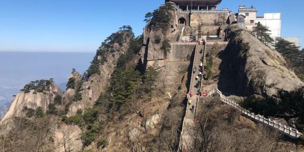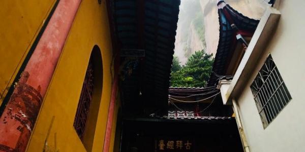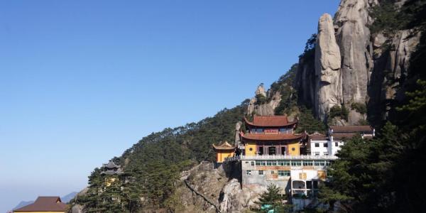 参拜九华山最高寺庙——天台禅寺,远眺海拔1342米的最高峰——十王峰,南望黄山如屏、北瞰长江如练,信步青龙背、捧日亭、一线天;