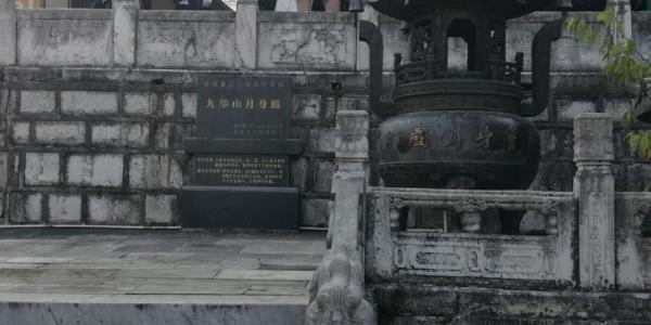 肉身宝殿,始建于唐代贞元年间,大殿建筑多次被毁,多次重建。肉身宝殿是九华山最精华、最神圣的地方,也是游客来到九华山的必去之地,这里安葬着高僧金乔觉(地藏菩萨)的肉身。根据佛法,金乔觉圆寂后,肉身放入缸中成殓。三年后,僧徒门围着缸建造佛塔,又在塔基上兴建殿宇,这座“殿中有塔,塔中有缸,缸中有肉身”的殿宇,就是著名的肉身宝殿。