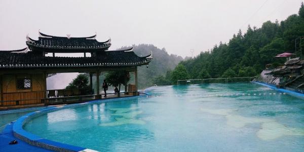 群山环抱云雾缭绕,海拔八百多米处有一座天空之城、云端瑶寨,这是全国唯一一个无边际高山恒温池,也是湖南省内海拔最高的恒温池,池水来自山涧峡谷岩缝的天然泉水清甜甘爽,冬暖夏凉,四季恒温。