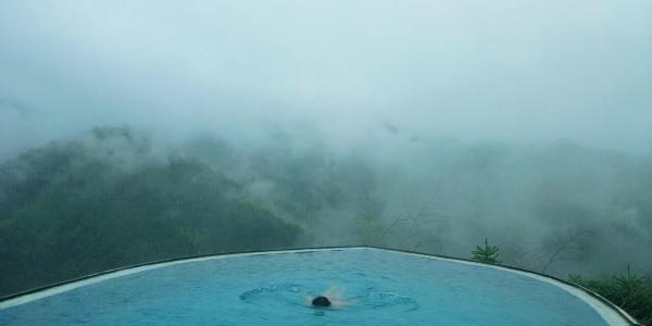溆浦枫香瑶寨高山泳池在古寨右上角的山坡上,是风情独特的呈枫叶状的高山无边际泳池,也是湖南唯一一家带有无边的游泳池温泉。泉水自泳池上方一块突出的石头下流淌着到泳池里,张开嘴就可以喝到来自山涧峡谷岩缝的天然泉水,清甜甘爽。游在这高山露天的泳池里,环顾四周都是翠绿丛丛,天离得都格外近。在这如此优美的环境下游泳,十分惬意和享受。