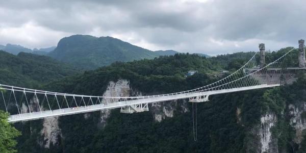 张家界大峡谷玻璃桥名"云天渡",位于湖南省张家界大峡谷景区栗树垭和吴王坡区域内,是一座景观桥梁,兼具景区行人通行、游览、蹦极、溜索、T台等功能。