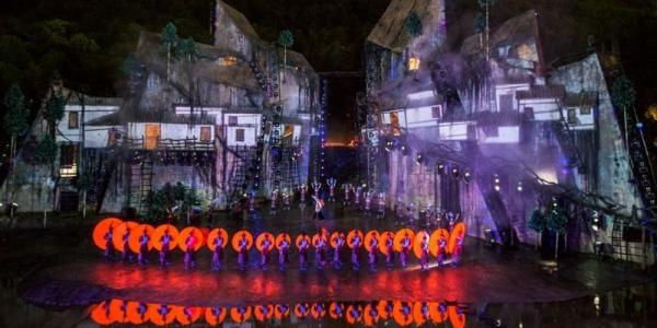 09:00,广清连高速【清新服务区】集合出发,中午到达阳山神峰关用午餐,下午游玩神峰关-神笔洞。16:30,出发前往连南,入住金瑶峰度假村(连州地区最豪华度假酒店,连住2晚)。19:00,晚餐后前往连南盘王文化园观赏【瑶颂】实景演出(世界首部瑶族实景音乐剧)21:30,建议节目:连南特色夜宵(瑶山黄牛肉、牛骨宴、山坑螺等)![]()