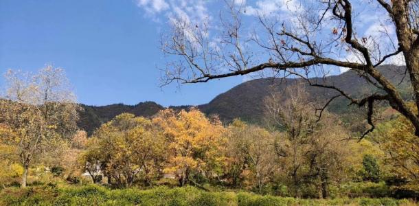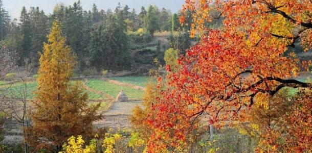 塔川村背靠连绵青山,遥对一碧万顷,是黟县桃源中一座低调的村落。但一到秋天,塔山就张扬出了绝色姿容。只言春色能娇物,不道秋霜更媚人。那是没见过塔川的秋天。万树争艳,深红浅黄,如同烈焰从天边燃起。