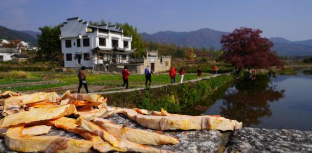 塔川村很大,错落有致,红色在四处飘扬,可以看到村民的晒秋,可以在白墙黑瓦中寻找最后的秋的美色,需要买门票进入,不过好像也可以从其它地方进入!