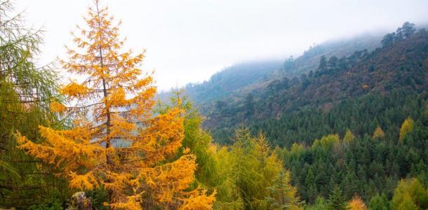 位于雅安宝兴县的神木垒景区,夏天特别凉爽,秋天的景色特别的美,种木垒景区的树木是落叶松和针叶松的混交林,秋天的时候翠绿和金黄相间,特别是金黄色,在阳光的照射下,非常好看!