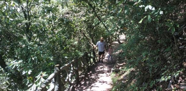 十八月潭就是一条山涧从上流下,形成很多水潭和瀑布,进了景区有两条路,分别通上游和下游的停车场,建议从上游往下游览,因为爬坡是比较累的。景区有摆渡车,收费十元,负责运送上下停车场的人员,因为走个来回还是受不了。十八