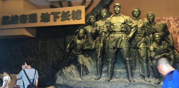 冉庄地道战纪念馆虽然离冉庄很近,但这还是第一次来参观冉庄地道,我们去正定玩回来路上看到冉庄地道战宣传牌,于是决定来参观,用导航很顺利就找到了,村里道路展馆都修建的挺好的,看到有不少车停在马路边上,我们停在一家关门的餐馆前。我们走到展览馆,是免费参观的,进到展厅,有很多图片视频和实物展品,介绍当年冉庄地道战的英勇事迹,顺着走是现在修的地道,地道里很凉爽,里面有灯,165高的人可站直行走,其中有很多岔道,我们走一会就出来了,是一条主街,很干净,有一些小店买纪念品,大多数店铺是拍抗战纪念照的,在大钟树那看到