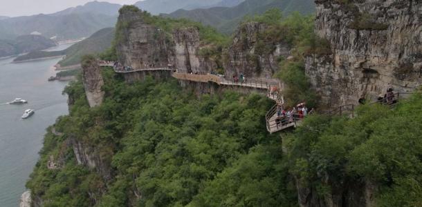 易水湖被称为“小桂林”是有些过誉了,但的确是风光秀丽。进入景区大门,直接就是码头,游览易水湖主要是登上湖对岸的老子峰,而乘船是唯一抵达方式。因此买往返船票是必须的,你能选择的只是乘大船还快艇。老子峰有3公里长的环形临水登山栈道,虽然蜿蜒曲折,但设计合理,登山台阶路坡度平缓,一步一景,不走回头路,全程基本无难度。从山上向下望去,山石奇特,湖水碧绿,令人心旷神怡。景区的痛点是船只运力不足,游客一多排队等船时间过久,如旺季前往建议错峰。