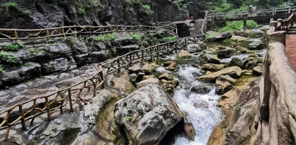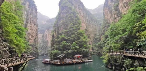 八泉峡被称为“低头九寨沟,抬头张家界”,位于山西长治壶关太行山大峡谷中段。超美的峡谷,自然形成的景观,这次我们也是跟团走的。因为这边是山区,景区也相当大,建议自驾游的盆友,还是买通票。我们是景区入口买门票,然后在开车走了大概20分钟左右到的景点,然后直接坐观光车,司机师傅会直接把你拉到一个坐游船的码头,超级凉快,心情也很好。 峡谷里的水很清澈,开船的小哥,也很帅气,坐游船的感觉好像是,看不到尽头,前面还有很多的美景,水是蓝色的,天空也是蓝色的,山是绿色的,一切都是美好的样子。重头戏—缆车,每个车可以容