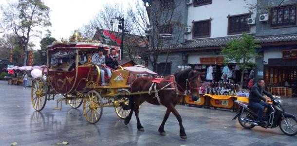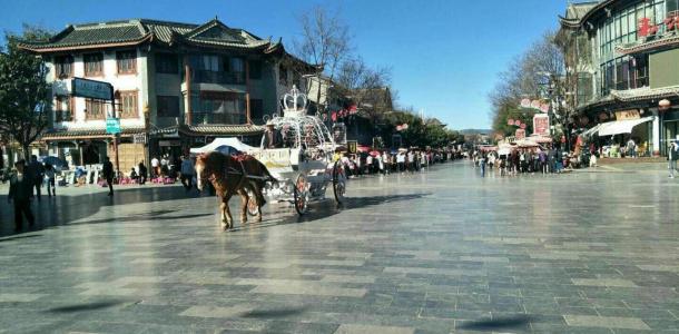 彝人古镇天很蓝,景色很漂亮,里面的水非常干净,清澈见底。地面也很干净整洁,路上还有马车跑过。建筑比较有特色,很多商铺,买各种吃的玩的,还有表演节目的。旁边是一个大型游乐园,适合亲子。