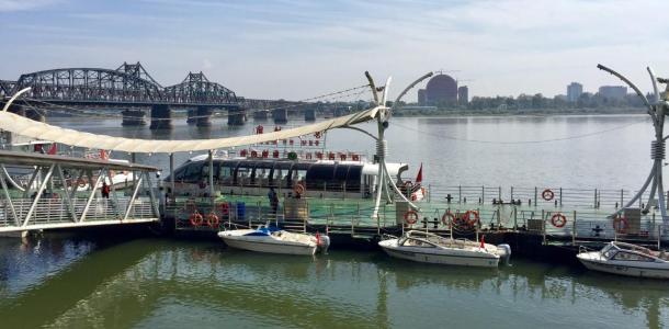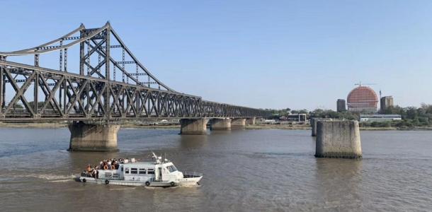 在酒店就可以看到鸭绿江断桥的全貌,于是便省了上桥的门票钱,对面就是朝鲜,我们的人坐着快艇看他们,他们的人也坐着快艇看我们,他们很热情,纷纷向我们挥手示意。