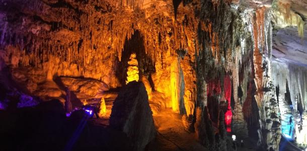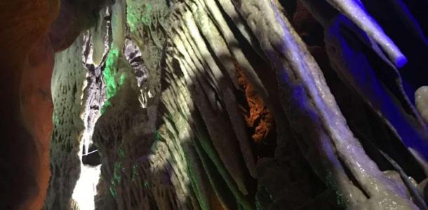雪玉洞是重庆著名的溶洞景区,这里有大量鬼斧神工的鹅管、妩媚动人的钟乳石、薄透如纸的石旗、迎风招展的石带、气势恢弘的石幕、凌空高悬的石幔、从天而泻的石瀑布、繁星灿烂的流石坝、不可思议的石毛发……导游讲的好几个世界第一都记不住了。