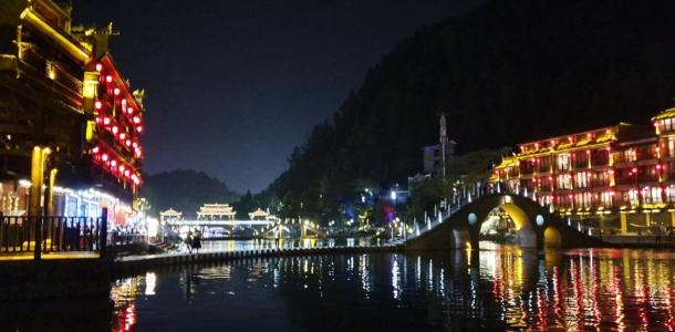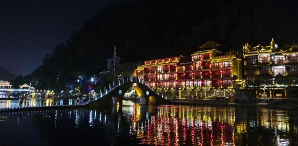 凤凰古城早就听说过凤凰古城的夜景很美丽。夜晚,漫步在沱江边,古城在灯光下美轮美奂,耳边飘过漫不经心的吉他声和歌手略带随意而低沉的歌声。还有那径通幽的长街深巷,都值得一探究竟。