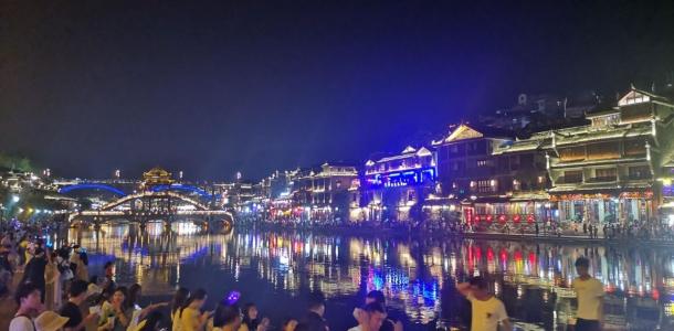 凤凰古城是国内保存较好的古城,凤凰古城是沿河而建,一条沱江将古城一分为二,古城夜景比较美,推荐吃过晚饭在古城漫步,看看凤凰有特色的小吃。整个古镇挺大的,逛了三个小时没逛完,顺着沱江两岸逛,一边酒吧多,一边商铺多,挺喜欢这边的。