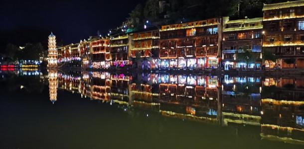 去过的古城不少了,凤凰古城虽然也存在同质化严重,但撞衫不可怕谁丑谁尴尬,凤凰古城美得有底气。停好车走进古城里正好傍晚时分,两岸点亮的灯火伴着夕阳的余晖倒映在水中,别提有多美了。