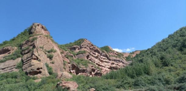 火石寨,在宁夏南部的固原市西吉县境内,属六盘山西部余脉。由于它的山峦呈现暗红色,尤其在绿树的掩映下,如同一团团燃烧的火焰,因而取名火石寨。是宁夏唯一同时拥有国家地质公园、国家森林公园、国家国土资源科普基地,自治区级自然保护区的旅游景区。门票60元/位,1.2m以上儿童半价。车不能开进景区,只好停在景区门口的停车场。景区很大,不过我们去的时候下雨,不尽兴,雨雾朦胧,景色大打折扣。