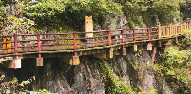 石门栈道不仅可以看到秀丽的自然风光,还可以领略古代人民的聪明才智,学到很多关于栈道的结构设计特点和具有历史文化底蕴故事,栈道大门口还修建了故事景观长廊,将从古至今关于栈道的有名气的场景通过微观泥塑一一重现,还没开始爬栈道先值回票价了。