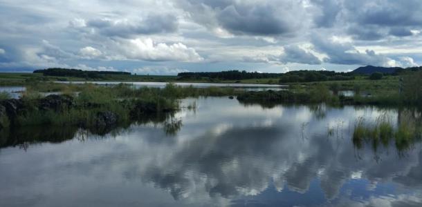 五大连池风景区老黑山与火烧山喷发熔岩阻塞了古河道,形成了五个火山堰塞湖,湖泊之间溪水相通,湖畔有大片的天然湿地,苇荡灌丛,堰塞湖还有深深浅浅的药泉湖、南北月牙泡、八卦湖、温泊错落分布……